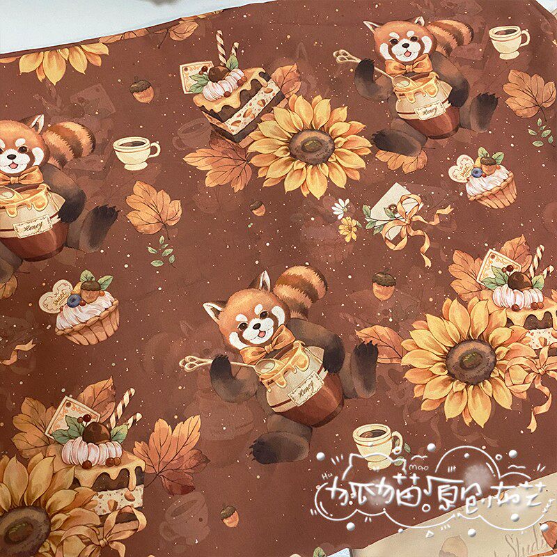小熊貓栗子蛋糕花布