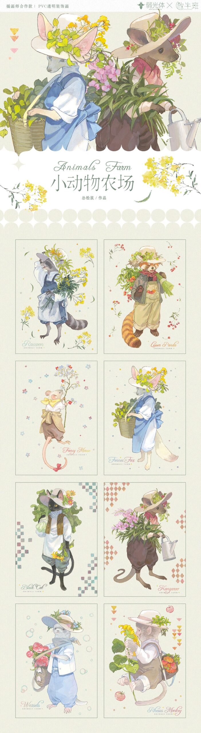 1套8張, 小熊貓, 浣熊, 狐狸, 老鼠, 貓, 袋鼠, 猴子, 貂