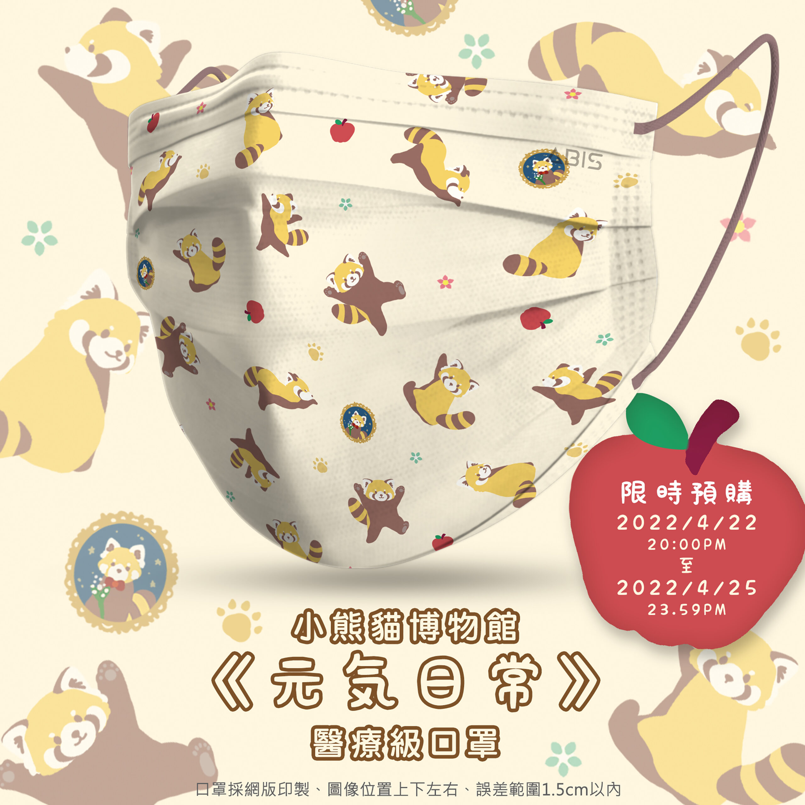 ![小熊貓博物館 |《元気日常》 醫療級口罩 [預購-第二批到貨未確認]](https://redpandamuseum.com/wp-content/uploads/2022/04/杏黃色口罩_3右側b.jpg)