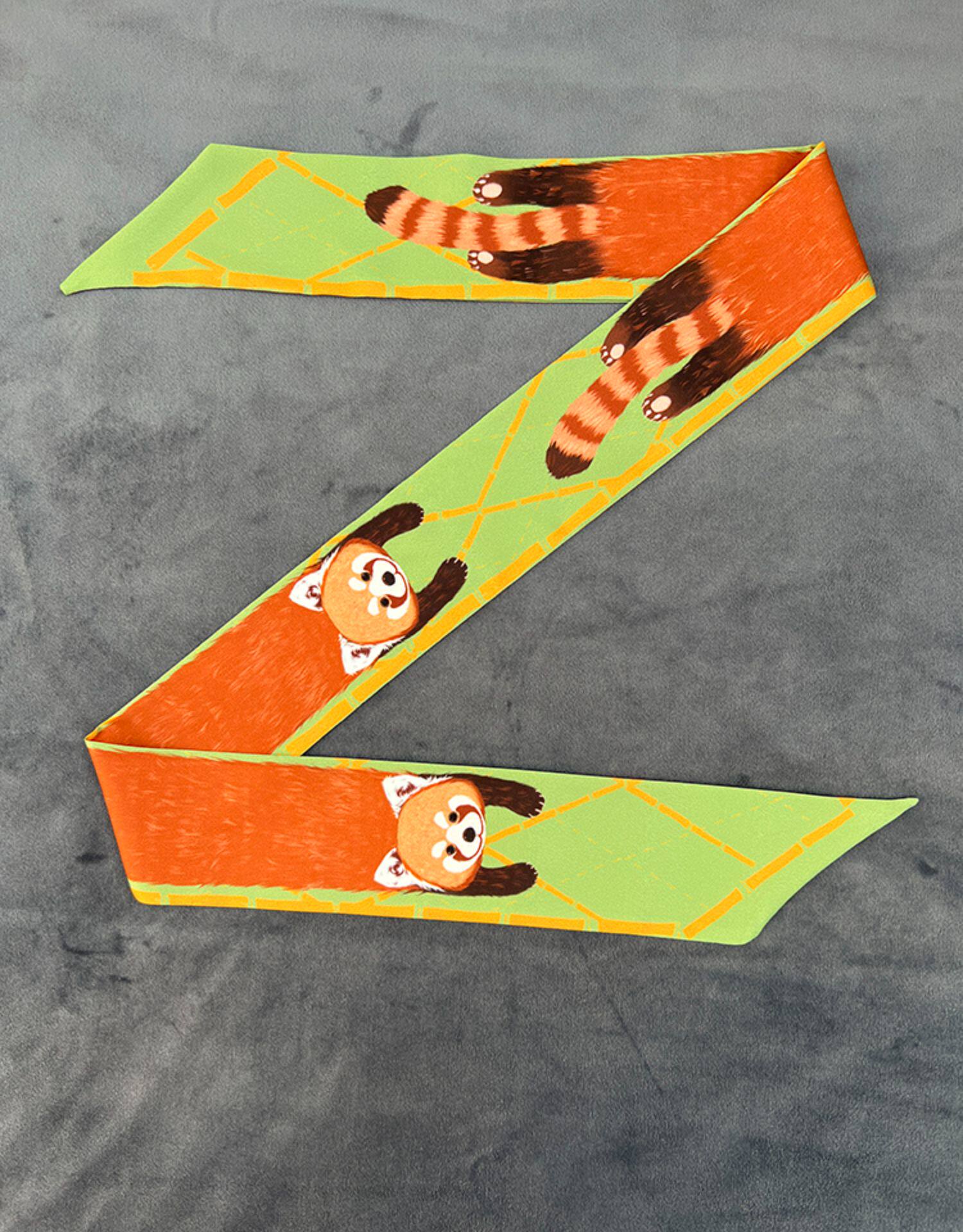 小熊貓復古橙色絲巾絲帶