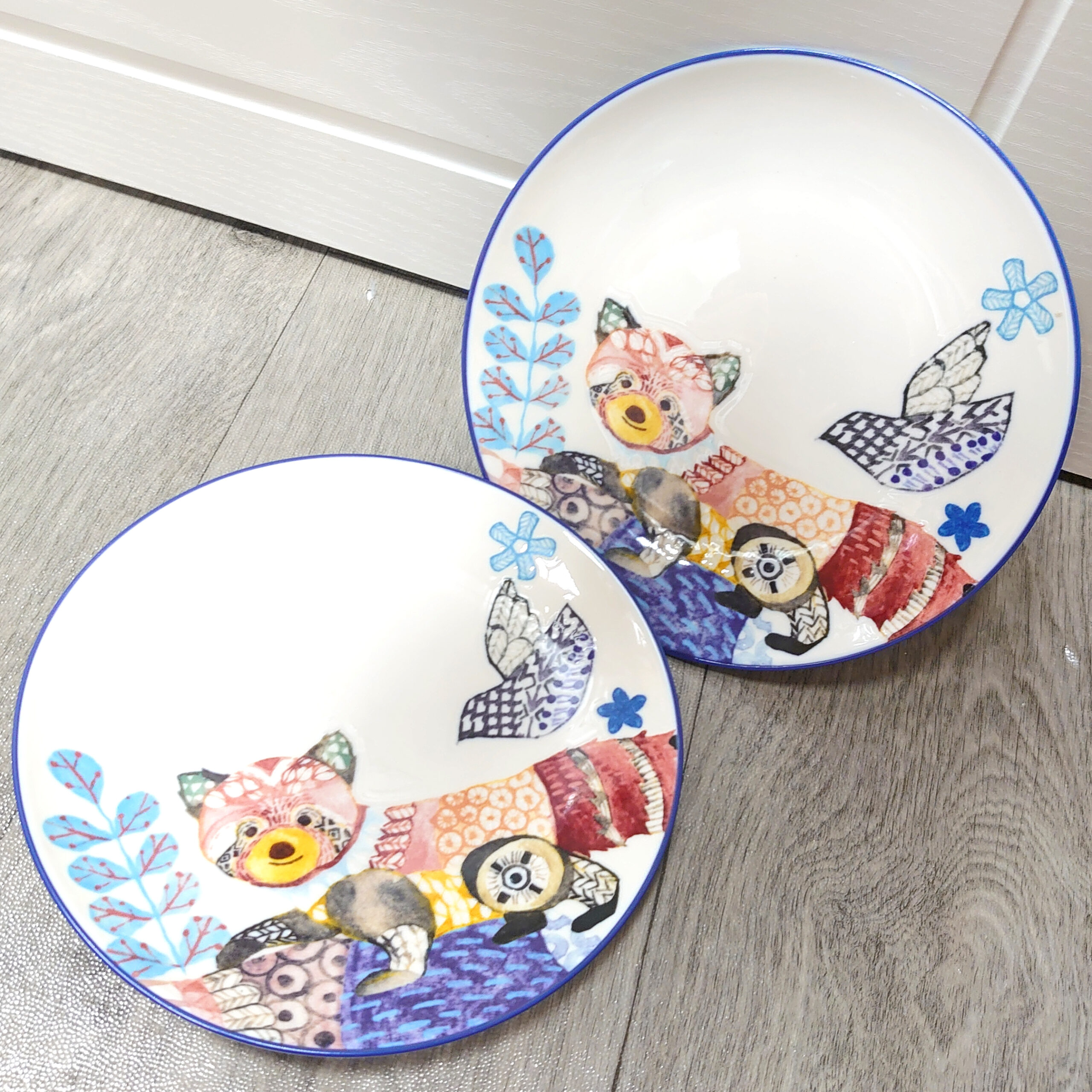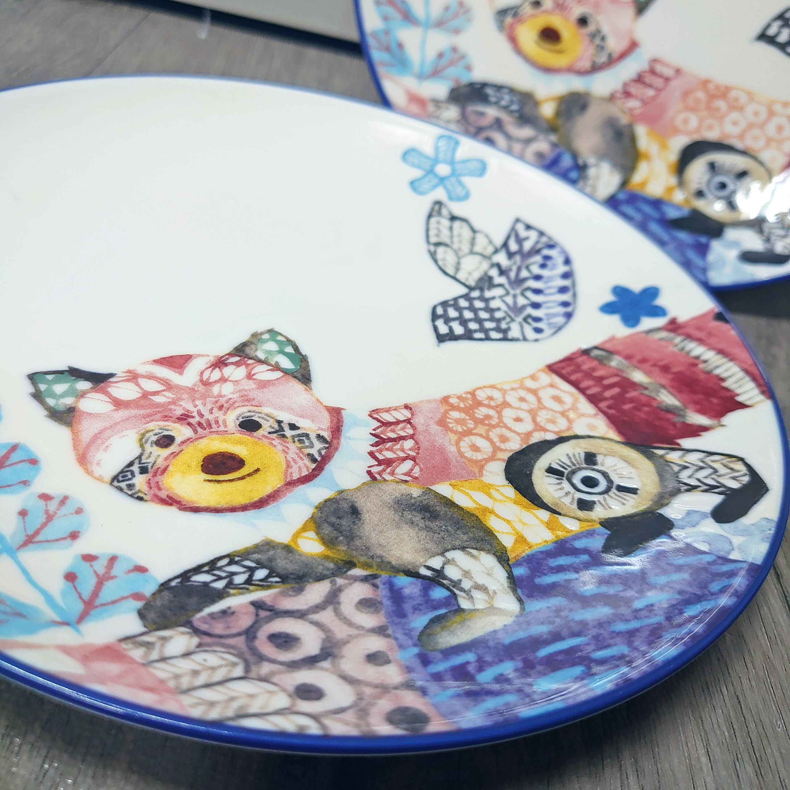 以歐式風格描繪出小熊貓圖案的陶瓷瓷碟