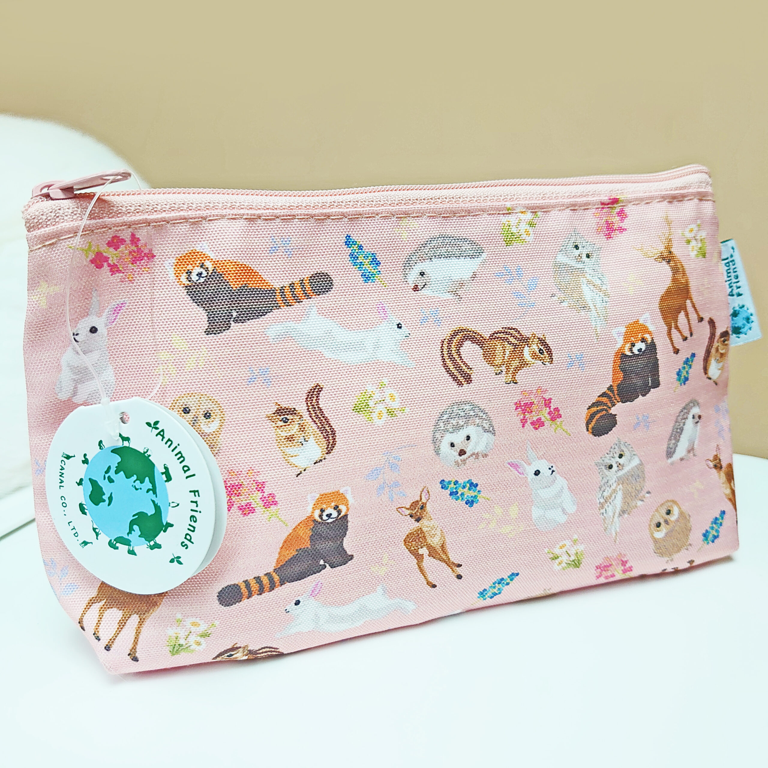 [超實用的animalfriends筆袋/置物袋] 以粉色作調再加入小動物碎花圖案 很有少女心的一款設計($98) W18*H11*D5容量當作化妝袋或筆袋也沒問題
