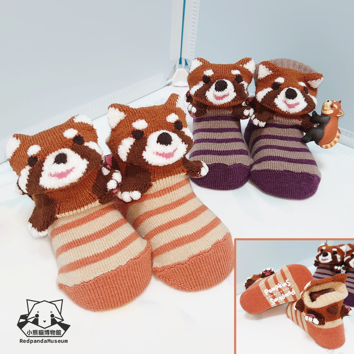 小熊貓初生嬰兒BB襪-紅啡/黑啡 數量